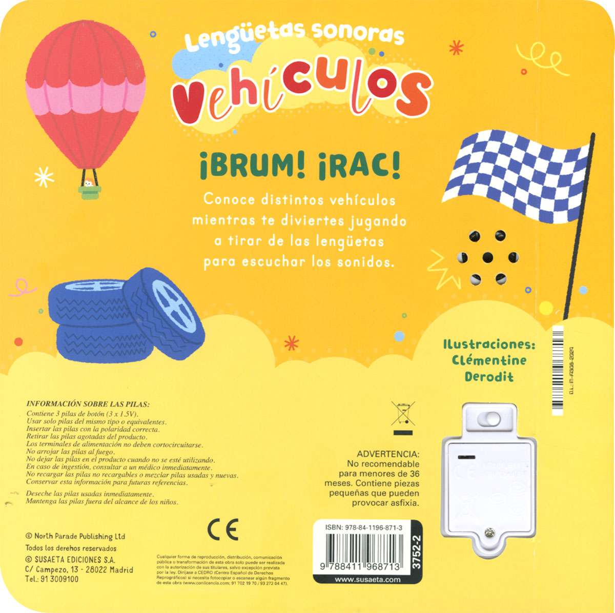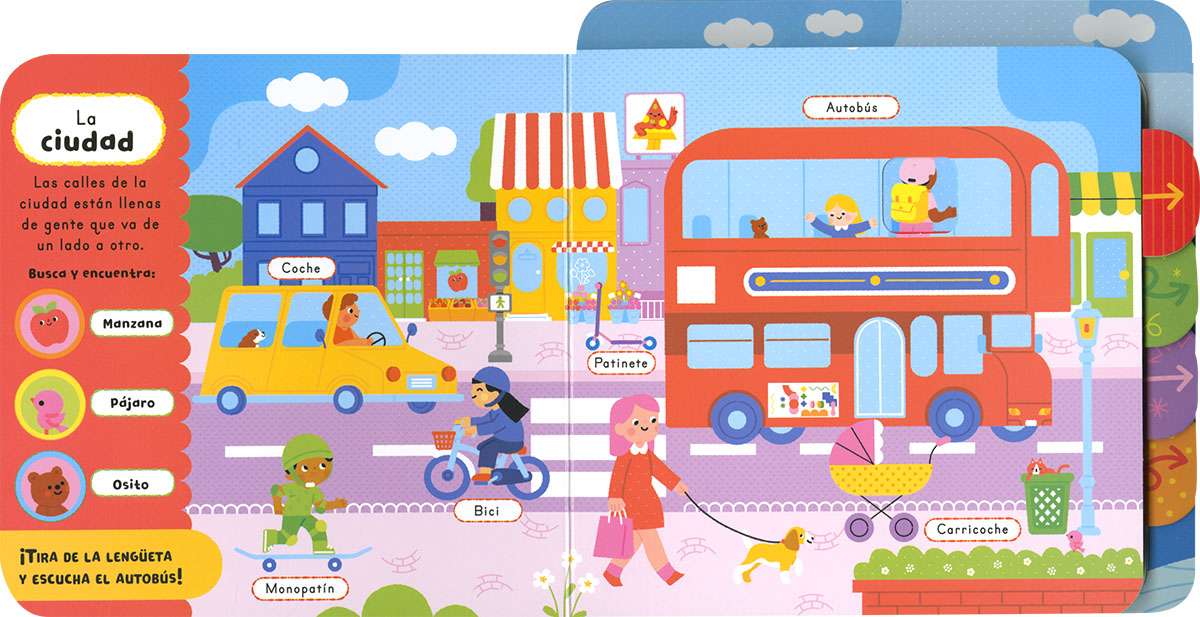 Enquadernació: Libro de cartón plastificado en brillo, de esquinas redondeadas y lengüetas con sonidos.