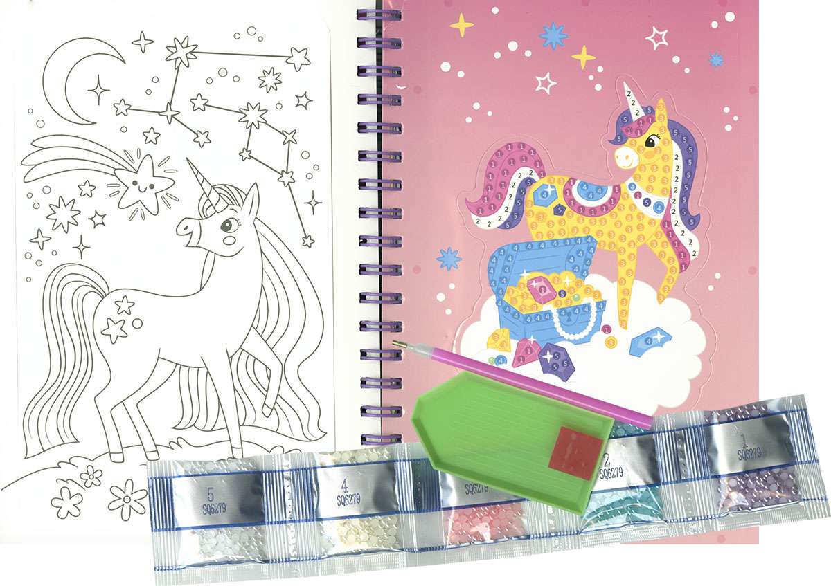 Crea brillantes láminas de mágicos unicornios con este completo kit. Elige entre 1500 cristales de colores y crea deslumbrantes diseños. Solo tienes que despegar y pegar. ¡Muy sencillo!