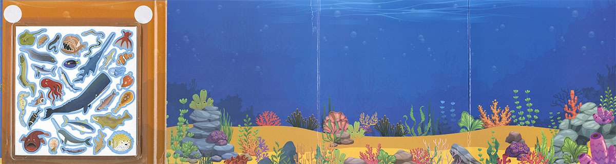 Con este gran libro desplegable podrás crear tus propios escenarios para jugar con tus animales marinos preferidos. Ábrelo y escoge los imanes que más te gusten. Invéntate fantásticas y emocionantes aventuras en el mundo submarino con las criaturas más fascinantes que puedas imaginar.