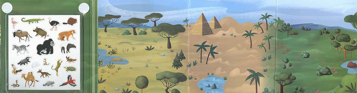 Con este gran libro desplegable podrás crear tus propios escenarios para jugar con tus animales salvajes preferidos. Ábrelo y escoge los imanes que más te gusten. Invéntate fantásticas y emocionantes aventuras en la naturaleza con las criaturas más fascinantes que puedas imaginar.