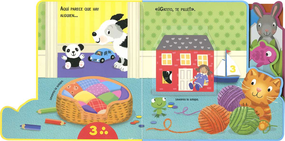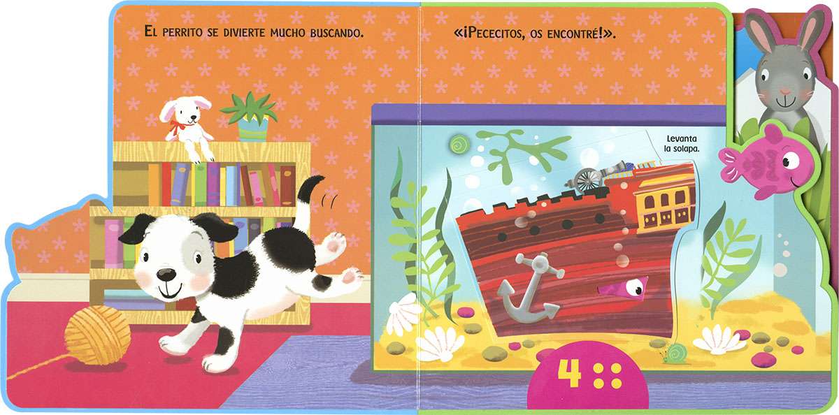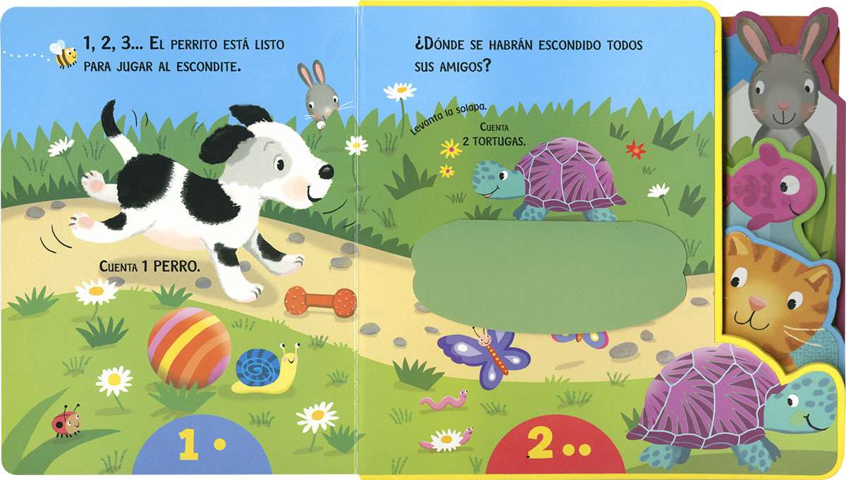 El perrito juega al escondite con sus amigos. ¿Dónde se habrán metido? Levanta las solapas del interior de este libro infantil y ayuda al perrito mientras aprendes a contar del 1 al 5. Los grandes índices laterales de goma EVA te ayudarán a pasar las páginas. ¡Únete a su búsqueda y encuentra las tortugas, los peces o los gatos!