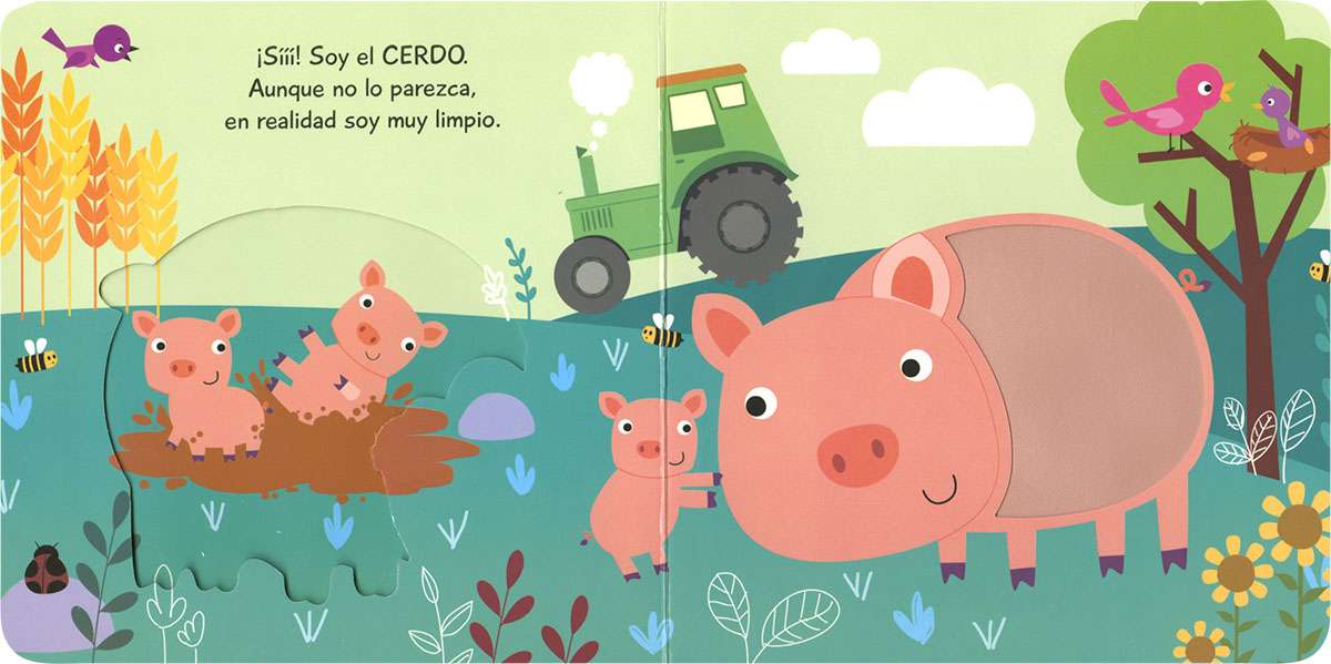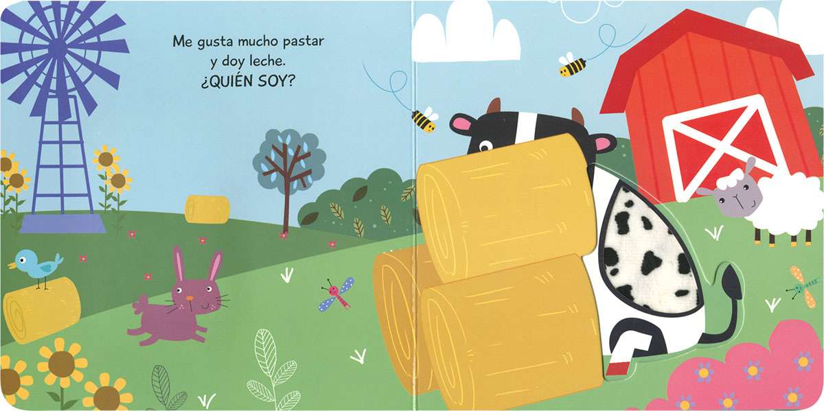 Toca la textura de este animal que se esconde: ¿cuál es? Ahora, pasa la página. ¡Acertaste, es la oveja! Toca y experimenta con este divertido libro de cartón ideal para los más pequeños de la casa.