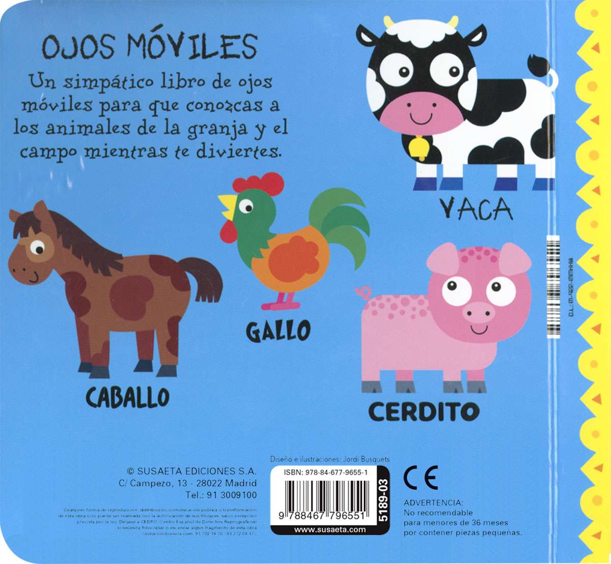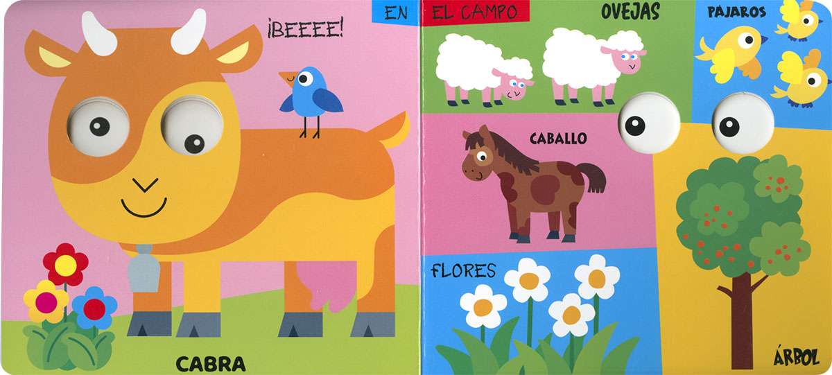 Un simpático libro de hojas de cartón con ojos móviles para que conozcas a los animales de la granja y el campo mientras te diviertes.