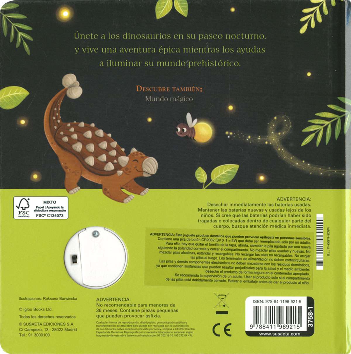 Únete a los dinosaurios en su paseo nocturno y vive una aventura épica mientras iluminas su mundo prehistórico. ¡Pulsa el huevo y sorpréndete con su luz de colores!