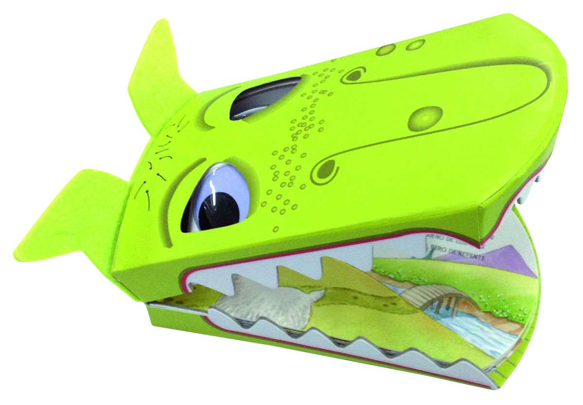 Binding: Cartón plastificado mate, troquelado en forma de boca, con ojos que se mueven y orejas de gomaespuma