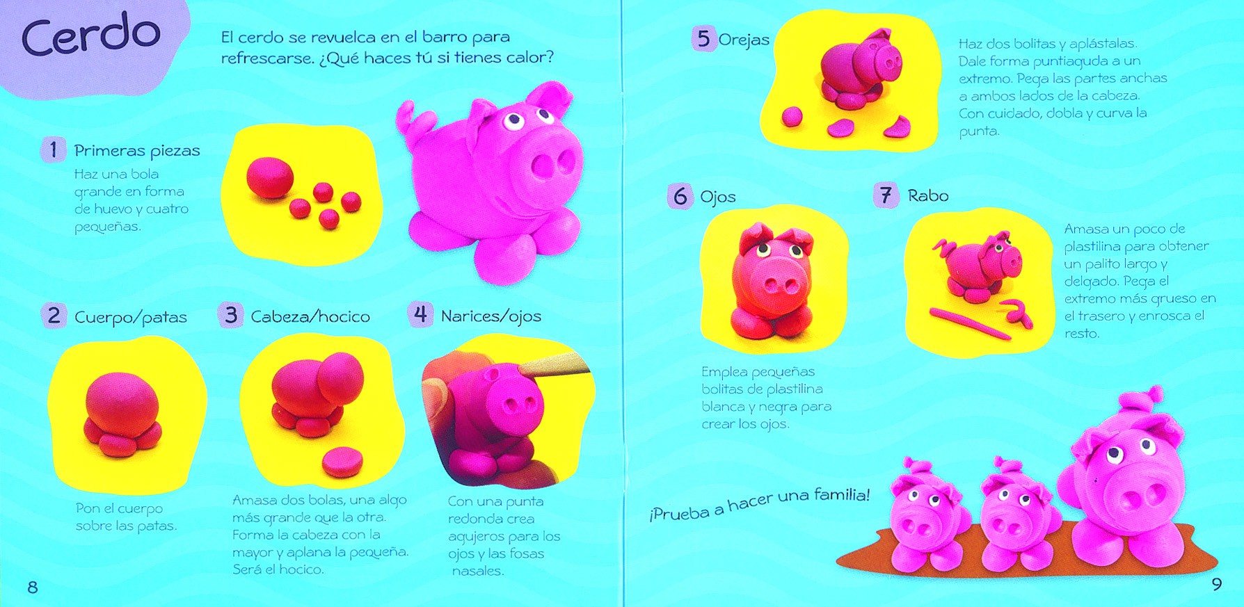 Crea la figura que quieras, desde leones a mariposas, con las instrucciones de esta caja, los utensilios y la blanda y maleable plastilina de 10 colores distintos que incluye esta caja.