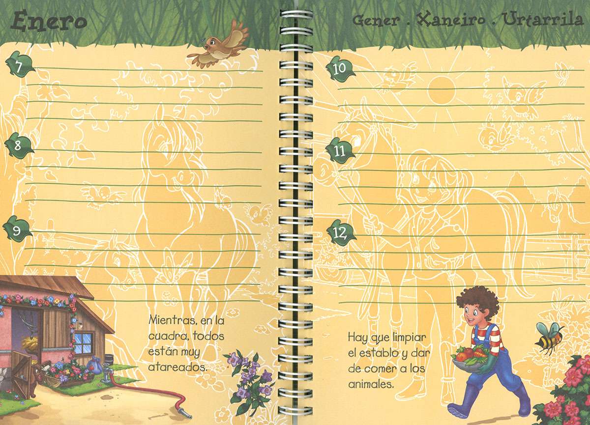 La agenda escolar permanente de caballos y ponis te ayudará a organizar todos los datos, horarios, controles, etc. que quieras recordar durante el curso escolar, y al mismo tiempo te divertirás con sus historias y simpáticos dibujos. Incluye una agenda de teléfonos y mucho espacio para que escribas todo lo que quieras.