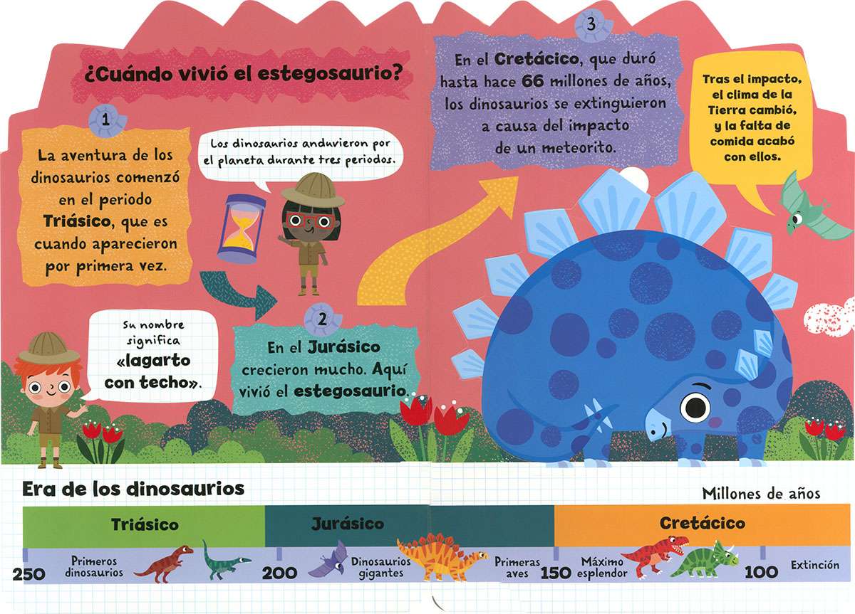 Levanta las solapas, adéntrate en el mundo prehistórico y conoce al gigante estegosaurio. Un libro de cartón gigante perfecto para jóvenes amantes de los dinosaurios.