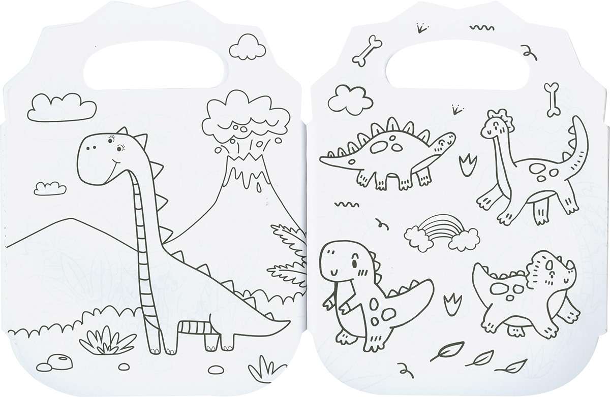 32 páginas de dinosaurios para colorear en un formato con asa para llevar el libro adonde quieras y cuando quieras. ¡Y con fantásticas pegatinas para completar tus dibujos!