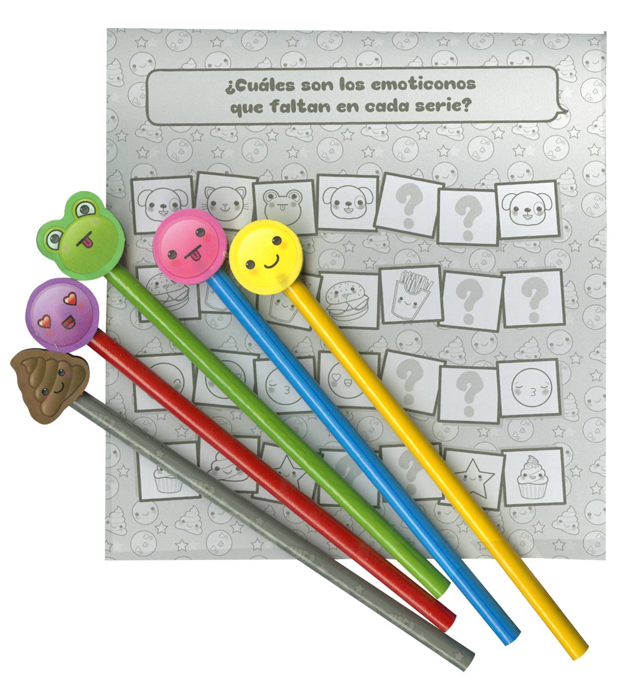 Diviértete con un montón de actividades diferentes: puzles, laberintos, sudokus, dibujos... y aprende a dibujar emoticonos con este libro que incluye láminas para colorear y cinco lápices de colores con goma.