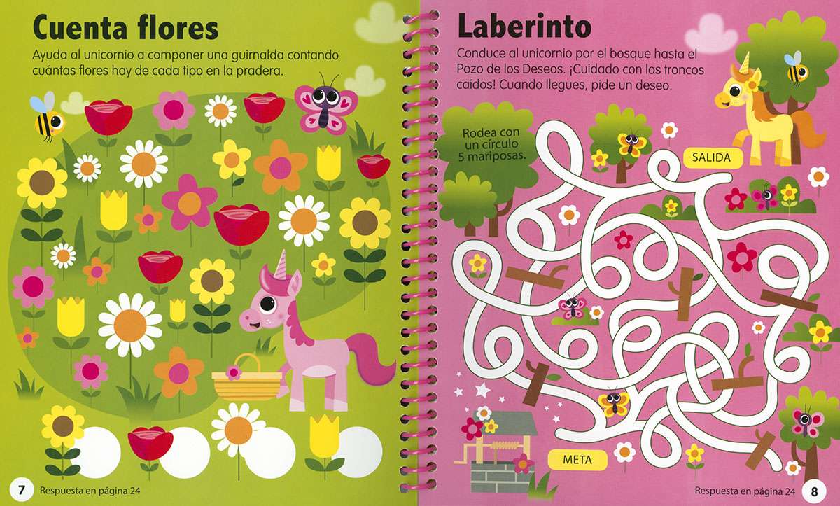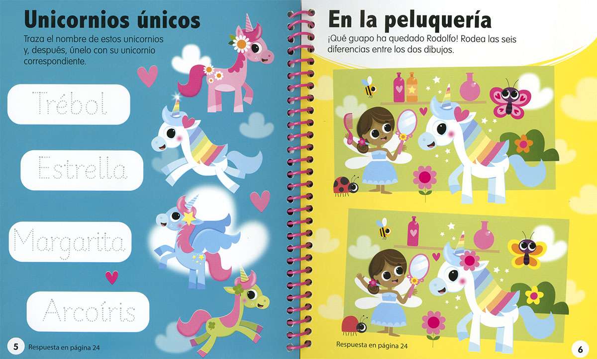 Descubre el mundo secreto de los unicornios con este libro de actividades que nunca se acaba. Utiliza el rotulador para recorrer laberintos mágicos, seguir los puntos, dibujar, sumar, restar... y mucho más.