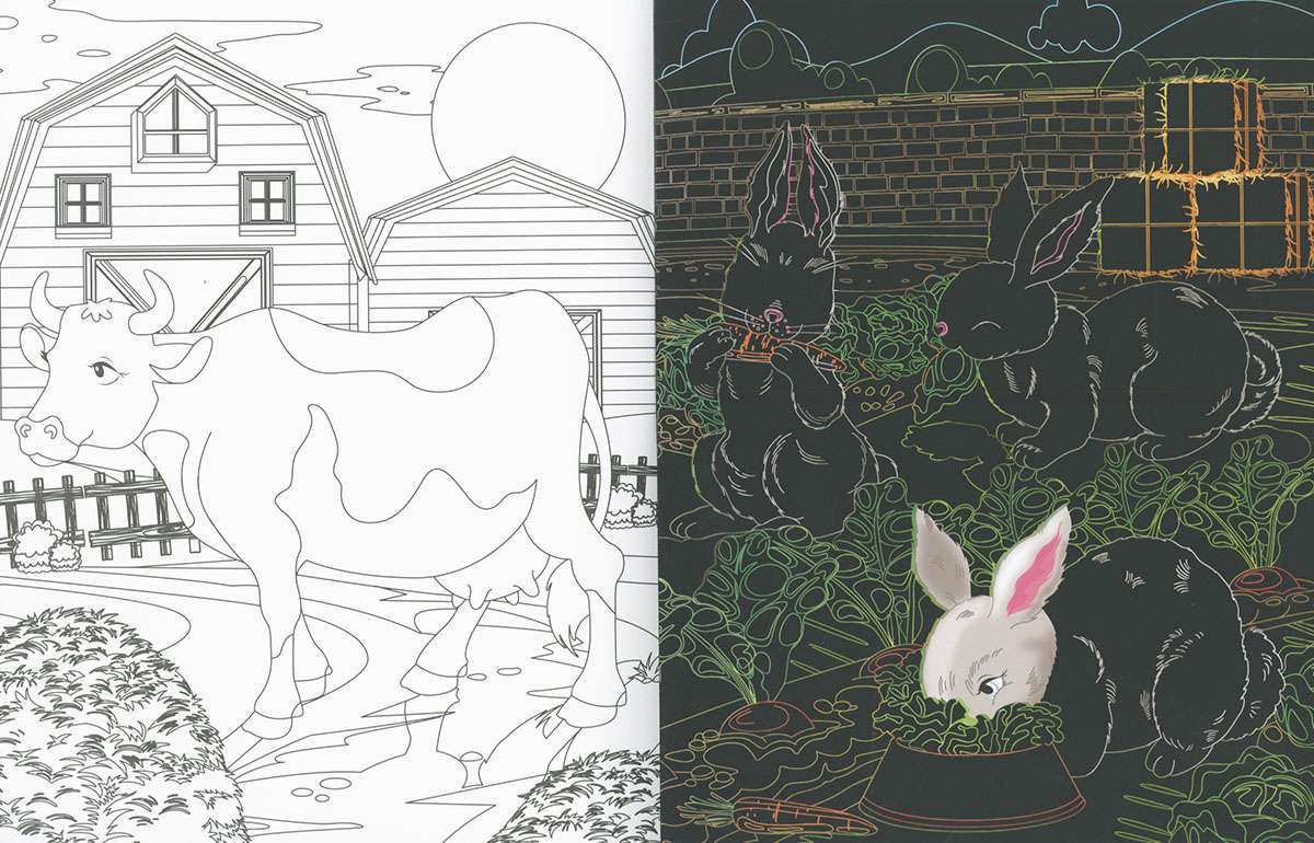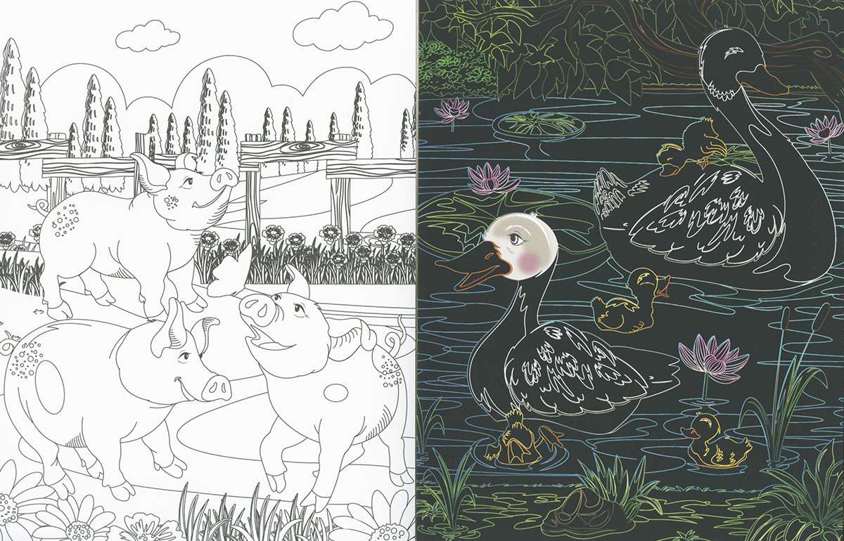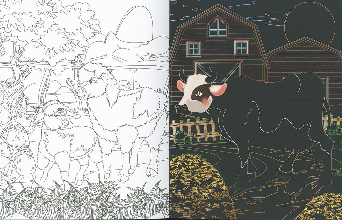 Descubre los maravillosos animales de la granja que se esconden en las páginas de este libro. Raspa las figuras en negro con el palito que incluye y sorpréndete con los fantásticos efectos de colores que van saliendo. Además, también tienes dibujos para colorear a tu gusto. Cuando termines, puedes desprender las páginas y regalárselas a tus amigos.