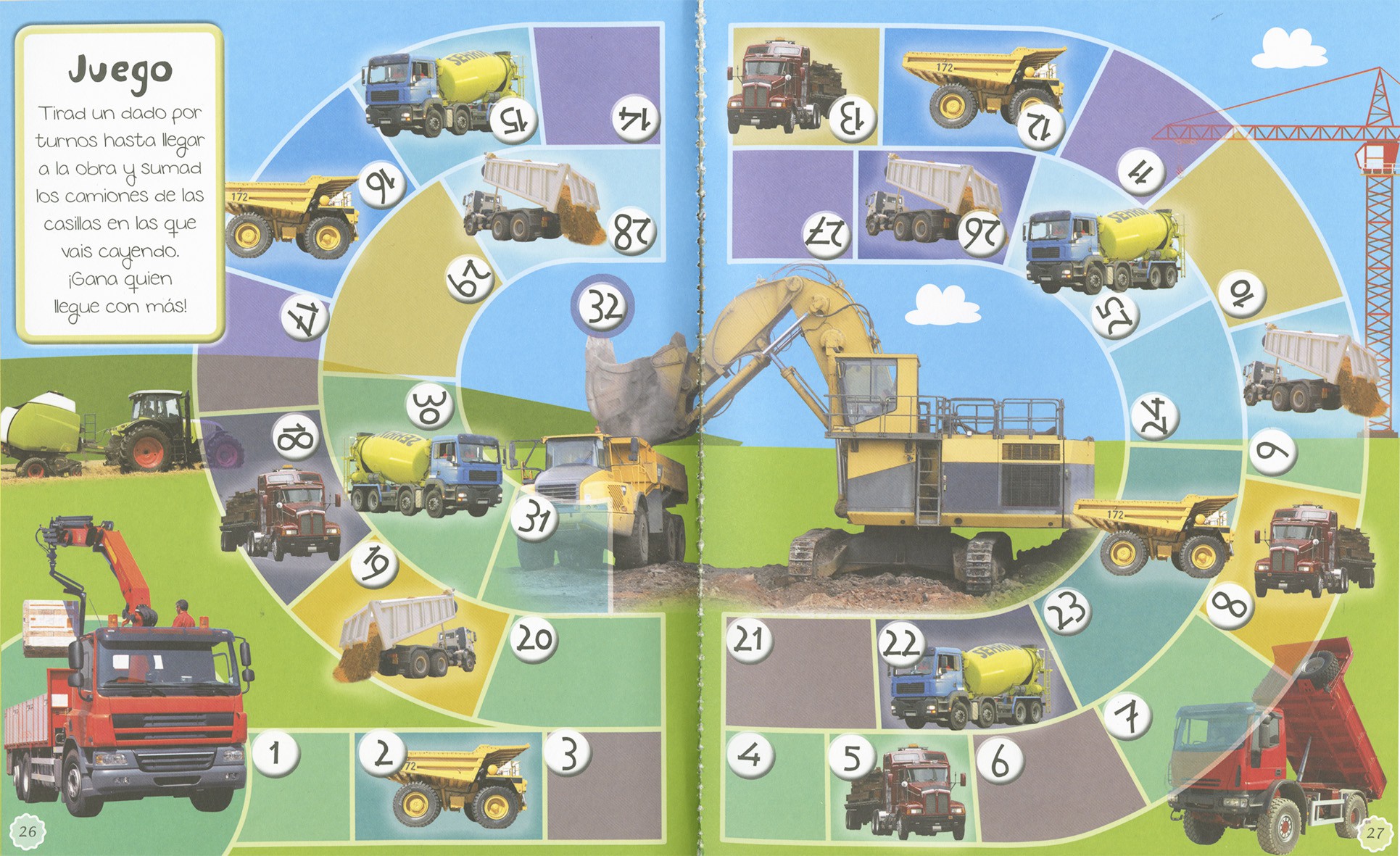 Diviértete con tus camiones y vehículos preferidos, y los juegos y actividades de este libro; además, también incluye pegatinas y muchas figuras para montar y jugar.