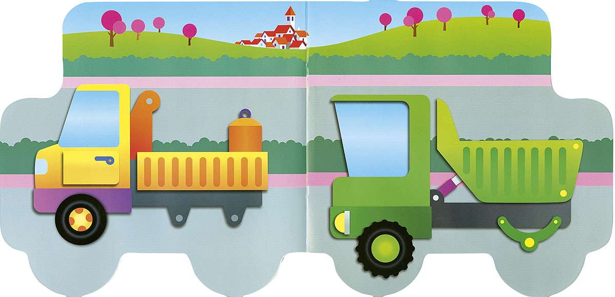 Completa las escenas y los camiones con las pegatinas de quita y pon de este libro. Puedes cambiarlas de sitio y volverlas a pegar cuantas veces quieras. ¡Ya verás qué divertido!