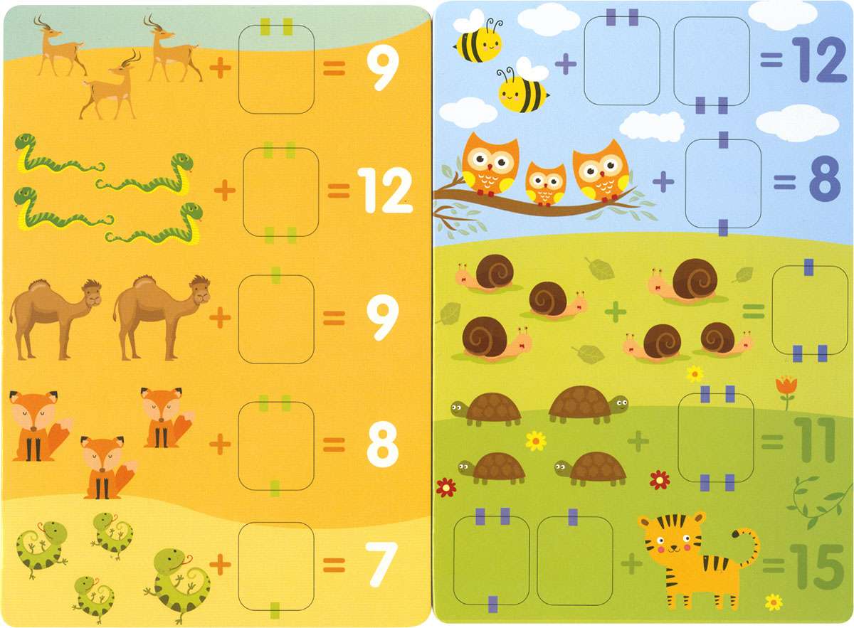 Tarjetas con simpáticas ilustraciones para aprender a sumar: Con imágenes divertidas y colores sugerentes, los más pequeños practicarán la suma visualmente agrupando objetos o mediante cálculos con números.