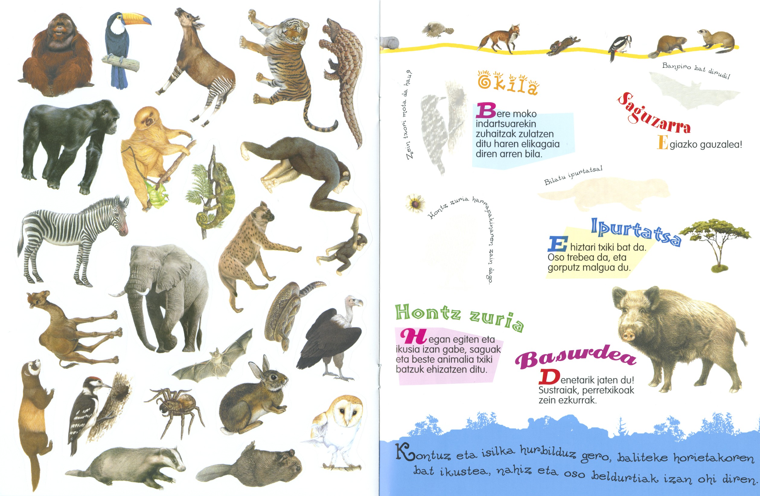 Oihaneko, itsasoko eta mendiko. Animaliak eranskailuekin