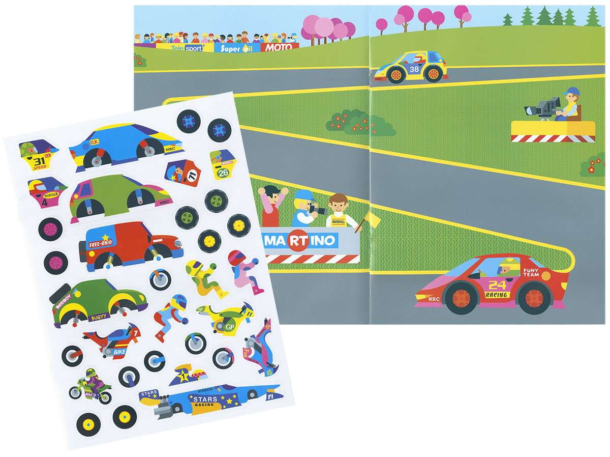 Liburu honen barrualdean aurkituko dituzun LASTERKETA AUTOEN ETA MOTOEN eranskailuekin, zure istorioak sortu ahalko dituzu. Eranskailuak nahi beste aldiz kendu eta erantsi ditzakezu.