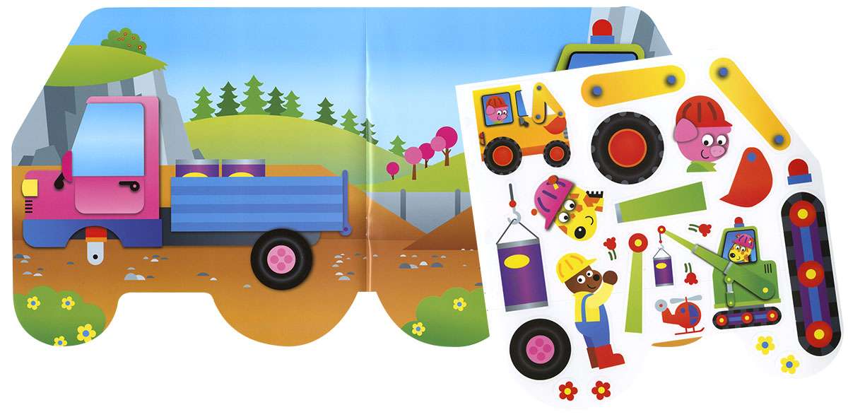 Osatu irudiak eta ibilgailuak liburuko eranskailuekin. Lekuz alda ditzakezu, eta nahi beste aldiz itsatsi eta kendu. Zein dibertigarria!