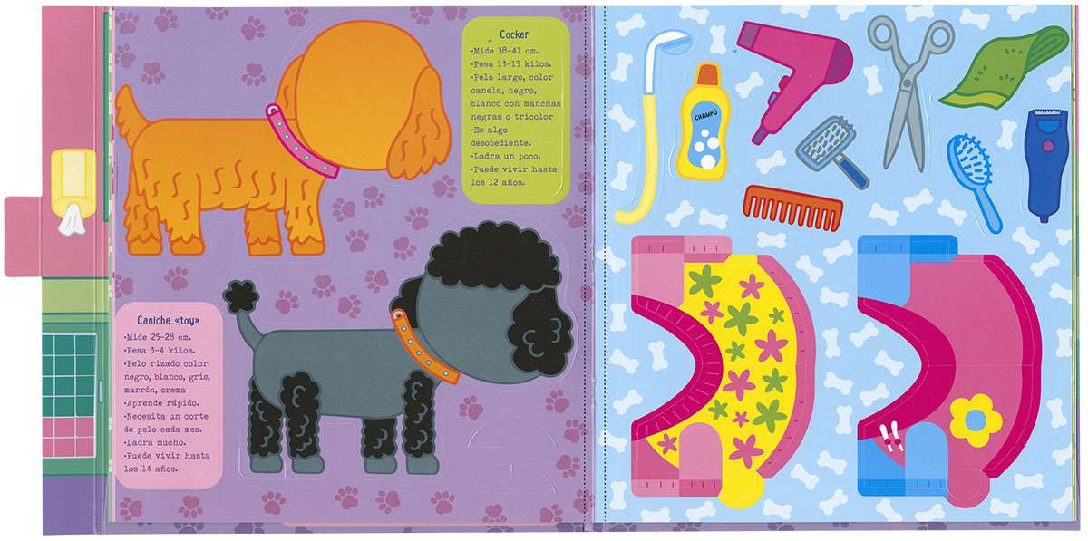 Un fantástico libro escenario con el que el niño desarrollará su imaginación, jugando con piezas extraíbles de cuatro perritos y sus accesorios. Además, también encontrará varias fichas sobre cómo son, y cómo cuidarlos y educarlos.