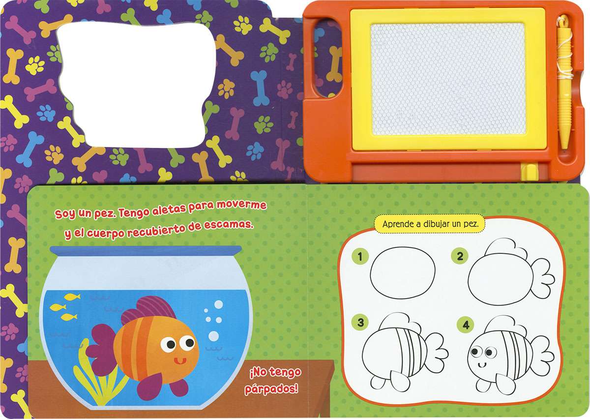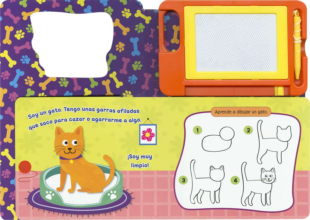 ¿Cuáles son tus mascotas preferidas? Con este libro de cartón podrás aprender a dibujarlas, ya que incluye indicaciones para hacerlo y una pizarra donde podrás practicar cuantas veces quieras. ¡Aprenderás a dibujar diez animales!