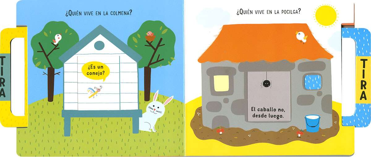 ¿Quién vive en el establo? ¿Y en la pocilga? ¿Quieres averiguarlo? Tira del asa para saber dónde tienen su casa los animales; te encantará hacerlo una y otra vez ¡porque suena con el movimiento! Un libro de cartón ideal para los pequeños de la casa.