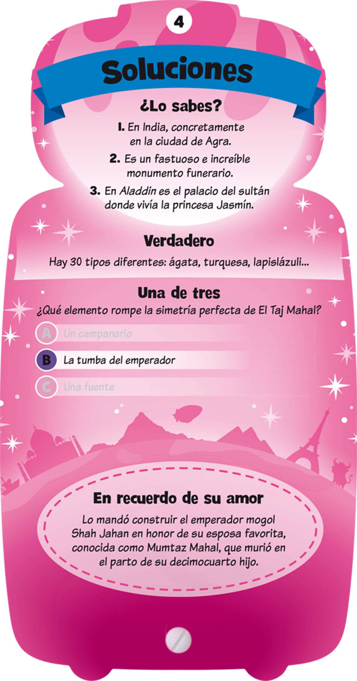 Más de 200 preguntas, respuestas y curiosidades sobre países, ciudades, accidentes geográficos o monumentos del mundo, con las que descubrir, aprender, jugar y divertirse mientras se potencian capacidades mentales como la memoria o la lógica.