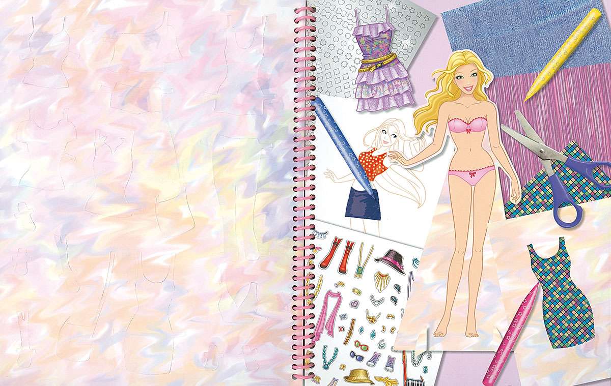 Con tu bolso de moda Top Models podrás crear tus diseños más modernos y divertidos: en su interior encontrarás dos figuras troqueladas, además de ropa y complementos para vestirlas como más te guste. Al extraer los vestidos, obtendrás una plantilla para dibujar cuantos necesites, y podrás terminarlos con los estampados y pegatinas que incluye el bolso.