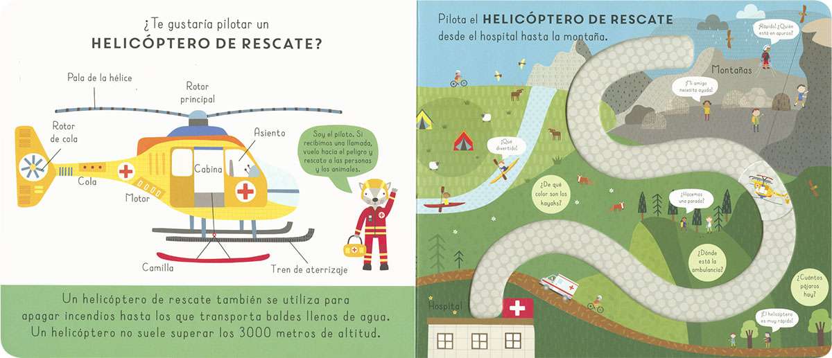 ¿Te gustaría conducir un camión de bomberos? ¿Y un bote salvavidas? Con este libro de cartón podrás hacerlo: mueve el disco por el camino trazado con tu dedito mientras aprendes cosas sobre cada vehículo. ¡Hay cinco diferentes para conducir!