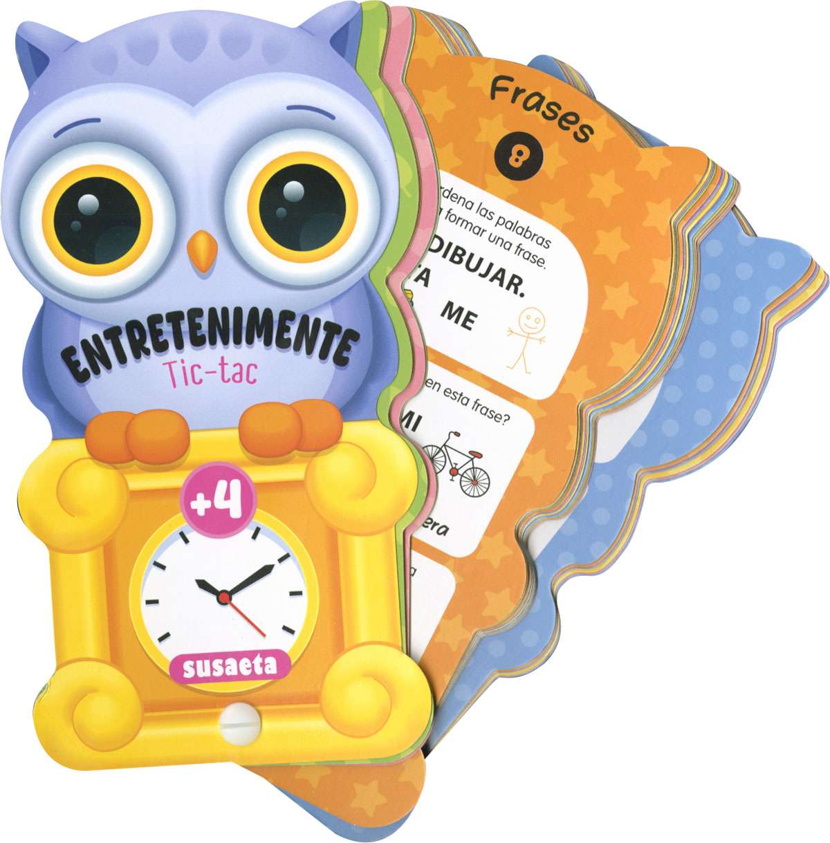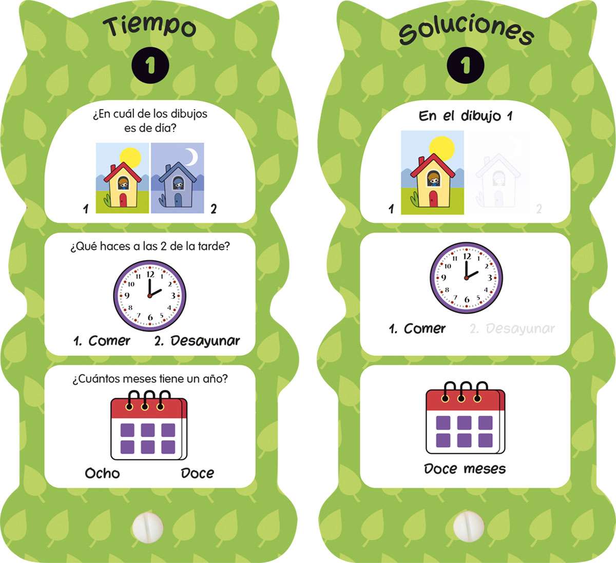 ¡Diviértete y aprende! En cada ficha aparecen dibujos sencillos con preguntas adecuadas para los más pequeños. Tratan sobre el tiempo, las horas, algunas operaciones matemáticas, lógica y otros conceptos que el niño está aprendiendo en esta etapa. El juego consiste en mostrarles estas imágenes y hacerles preguntas sencillas que disfrutarán contestando y señalando con sus deditos. Además, podrán ver la respuesta en la parte trasera de cada ficha.