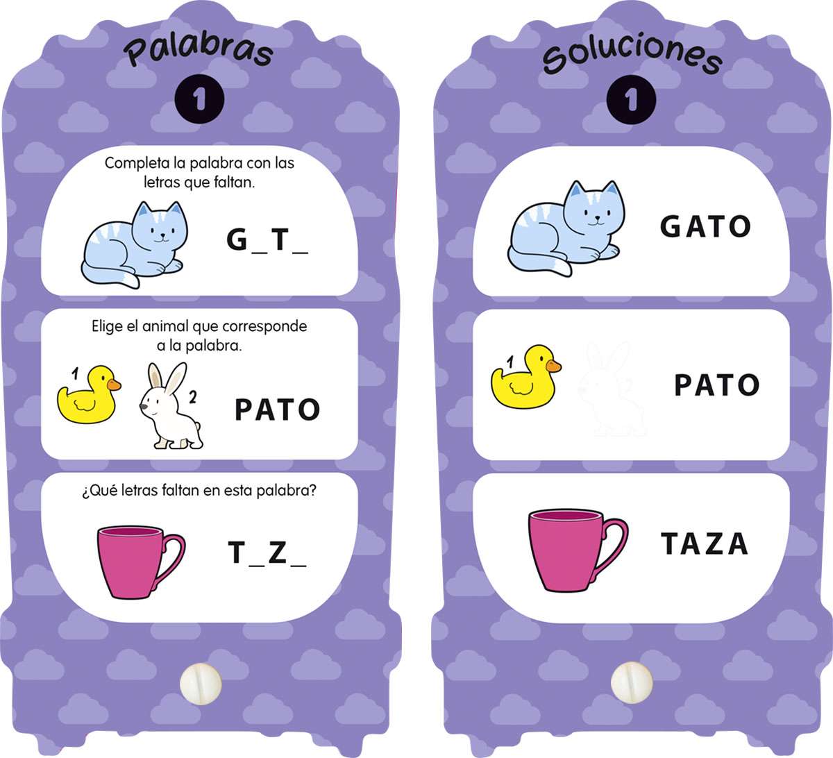 ¡Diviértete y aprende! En cada ficha aparecen dibujos sencillos con preguntas adecuadas para los más pequeños. Tratan sobre números, letras, palabras y otras percepciones de la vida cotidiana que el niño está aprendiendo en esta etapa. El juego consiste en mostrarles estas imágenes y hacerles preguntas sencillas que disfrutarán contestando y señalando con sus deditos. Además, podrán ver la respuesta en la parte trasera de cada ficha.