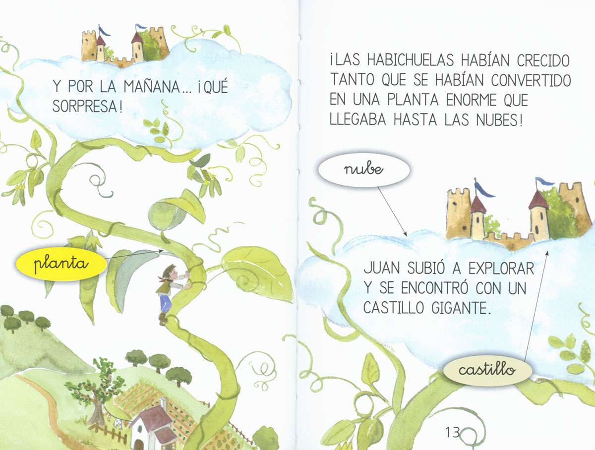 Juan y su madre son muy pobres; un día, su vieja vaca deja de dar leche y Juan tiene que ir almercado a venderla para sacar unas monedas por ella. Por el camino, se encuentra con un hombre que le ofrece cambiársela por unas habichuelas mágicas y a Juan le parece muy bien. ¿Qué crees que pasó después?