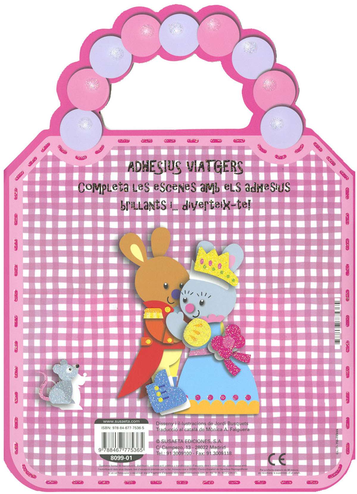 Binding: Cartolina plastificada mat amb purpurina i encunyada amb nansa, interior amb adhesius brillants
