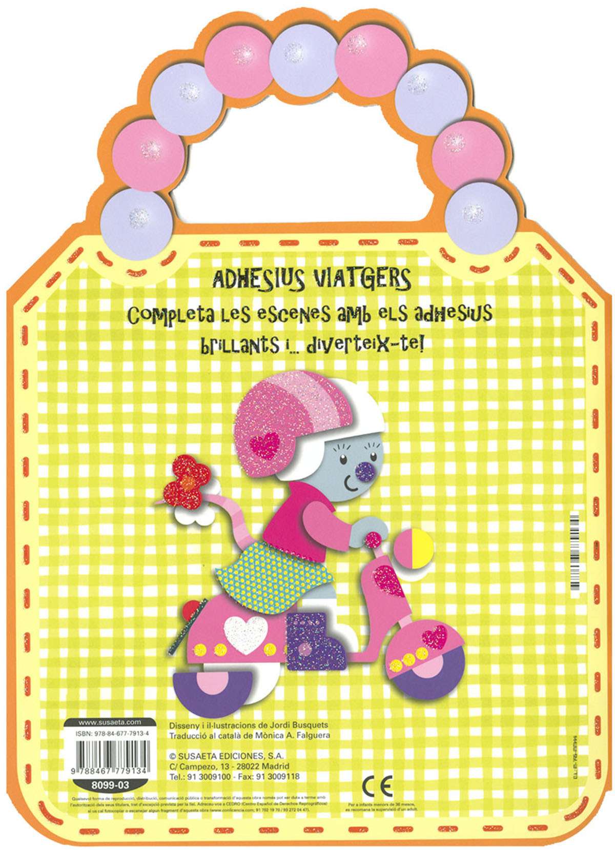 Binding: Cartolina plastificada mat amb purpurina i encunyada amb nansa, interior amb adhesius brillants