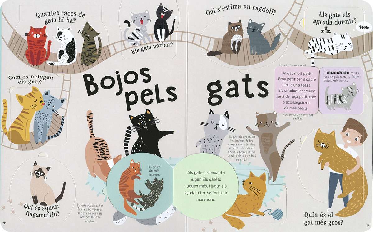 Es pot interpretar la cua d'un gat? Amb què s'ha d'alimentar un gatet?Aquest bonic llibre planteja més de seixanta boges preguntes per a i Aquest bonic llibre planteja més de seixanta boges preguntes per a informar i delectar una nova generació d'amants dels gats. Esbrineu quina edat ha de tenir un gatet per a poder adoptar-lo. Apreneu a desxifrar el llenguatge dels gats. Descobriu-ne les races, les atencions que necessiten, els comportaments i els costums.