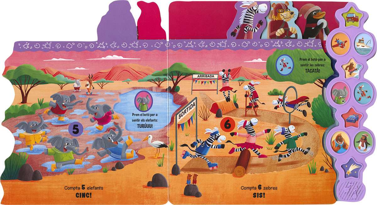Amb 10 sons i pentanyes de cartró fàcils de manejar, aques llibre és perfecte per a aprendre a comptar de l¡1 al 10.