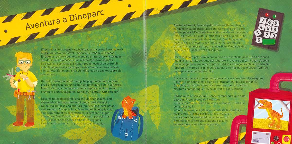 Binding: Cartoné amb coberta plastificada, interior amb maqueta dinopark desplegable i figures precortadas