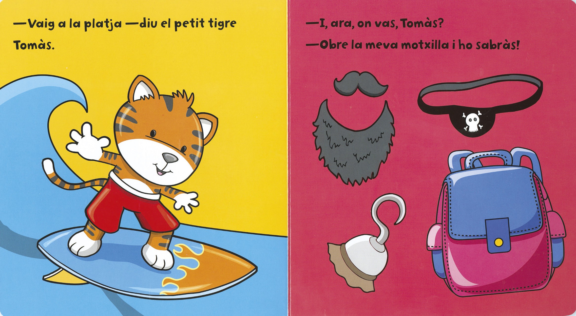 Acompaña al pequeño tigre Tom en su ajetreado día. ¡Aprende a abrir y cerrar su mochila para ver todo lo que lleva dentro!