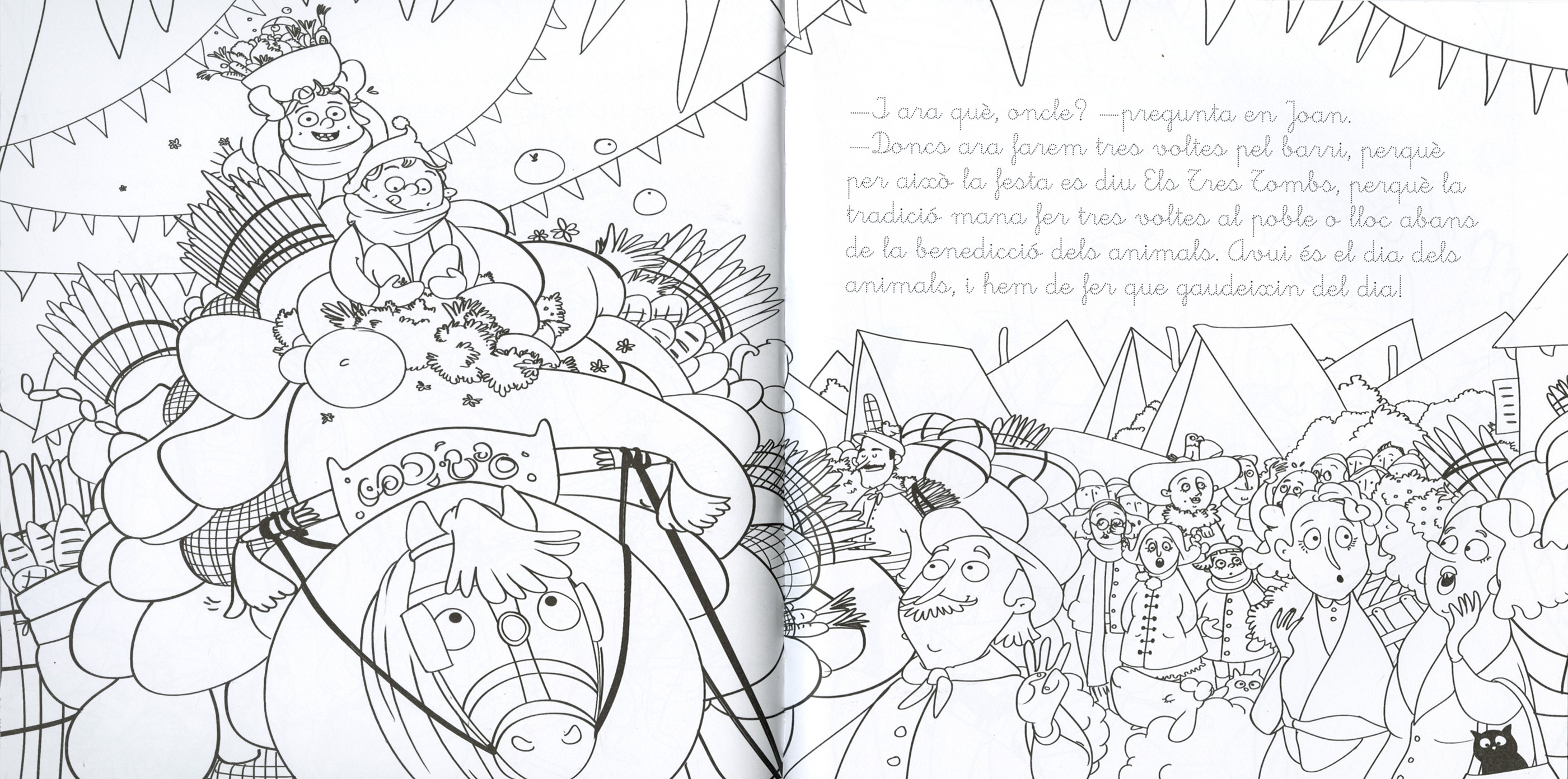 Diverteix-te pintant les il·lustracions de la festa d'Els tres tombs, una festa plena d'animals, carruatges i flors que alegra pobles i ciutats de Catalunya en ple hivern. Un dia dedicat als animals que ens acompanyen i ens ajuden. Passa-t'ho bé amb les festes i tradicions catalanes!