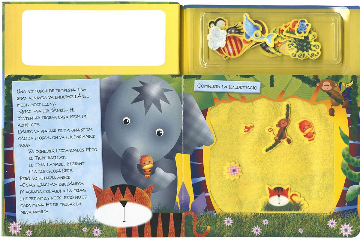 Pobre ànec! Una forta tempesta L´arrossega lluny d´on viu, però fa molts amics nous entre els animals que es troba mentre intenta tornar a casa. Passa-t`ho bé llegint la història i tria les peces de feltre per completar cada escena.