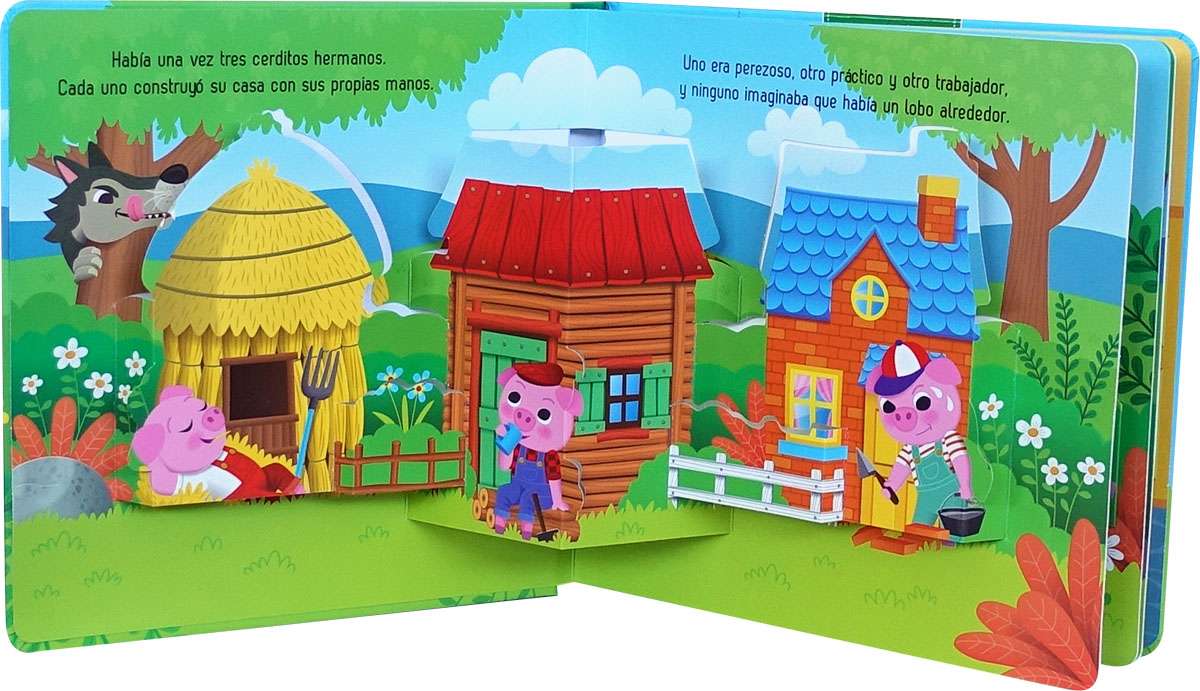 Abre este fantástico cuento desplegable de LOS TRES CERDITOS, lleno de simpáticas ilustraciones a todo color, y haz que cobre vida mientras disfrutas de la lectura.