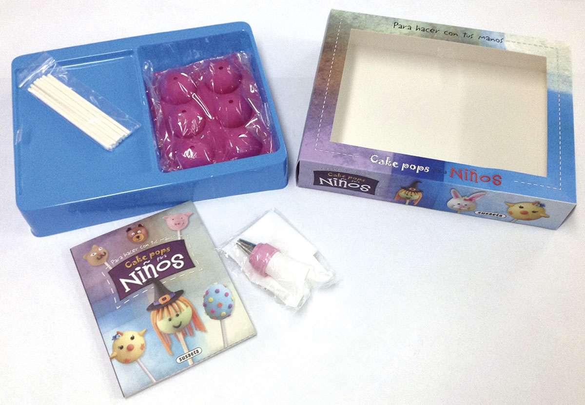 Son los dulces de moda: deliciosos bizcochitos recubiertos de chocolate de colores o fondant, que se comen con palo, como si fueran caramelos. ¡Y lo más divertido es hacerlos en casa! Descubre con esta caja cómo preparar exquisitos cake pops de la forma ma´s fa´cil y sencilla; además del libro con las recetas y muchos consejos, encontrarás en su interior un molde de silicona, una manga pastelera y palitos para completar tus figuras.