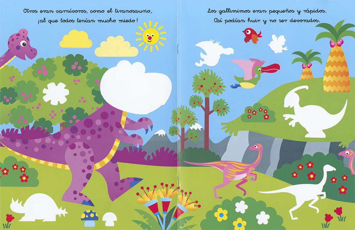 ¿Te gustan los dinosaurios? Con este libro, podrás disfrutar de la lectura y pasártelo en grande con ellos colocando las pegatinas en su lugar correspondiente.