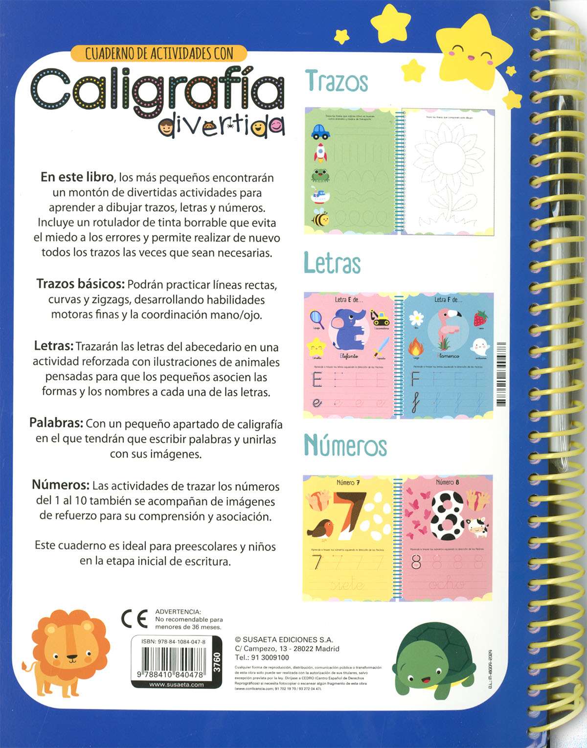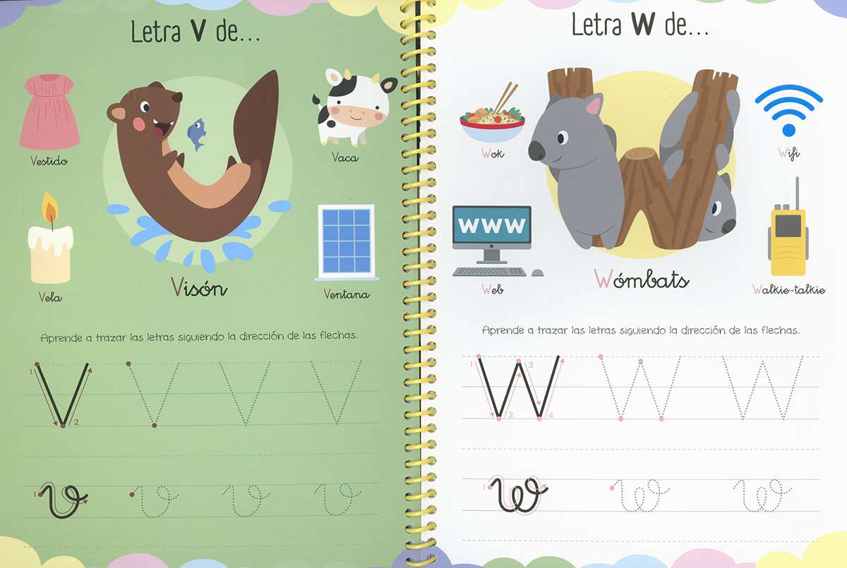 En este libro, los pequeños de la casa que están empezando a aprender a escribir encontrarán muchas actividades para practicar los trazos, las letras del abecedario y los números del 1 al 10, todo de una forma muy divertida y muy visual, con cada letra y cada número asociados al dibujo de un animal, y todo lleno de color y de simpáticas ilustraciones.