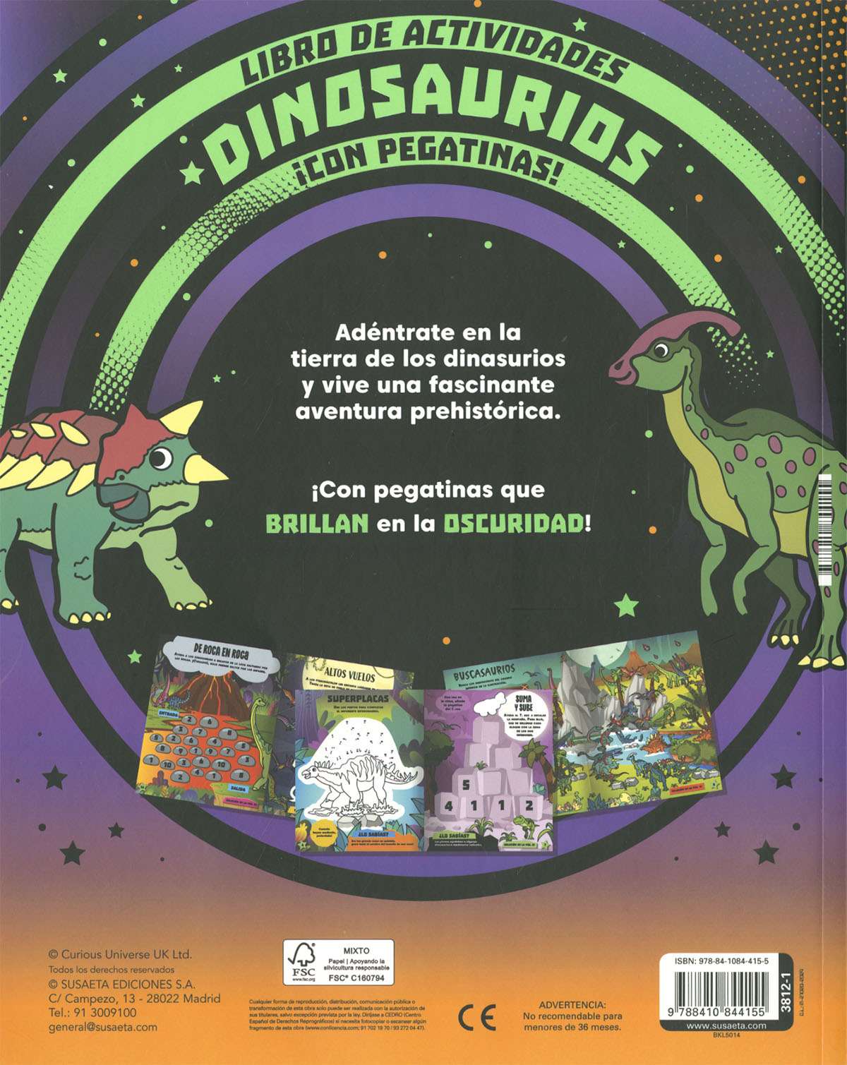Adéntrate en la tierra de los dinosurios y vive una fascinante aventura prehistórica con este divertido libro de juegos y actividades. En su interior encontrarás un regalo fascinante... ¡pegatinas que brillan en la oscuridad!