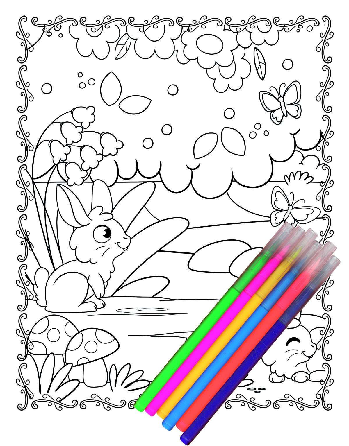 Encuadernación: Cartoné con cuaderno para colorear y rotuladores fluorescentes