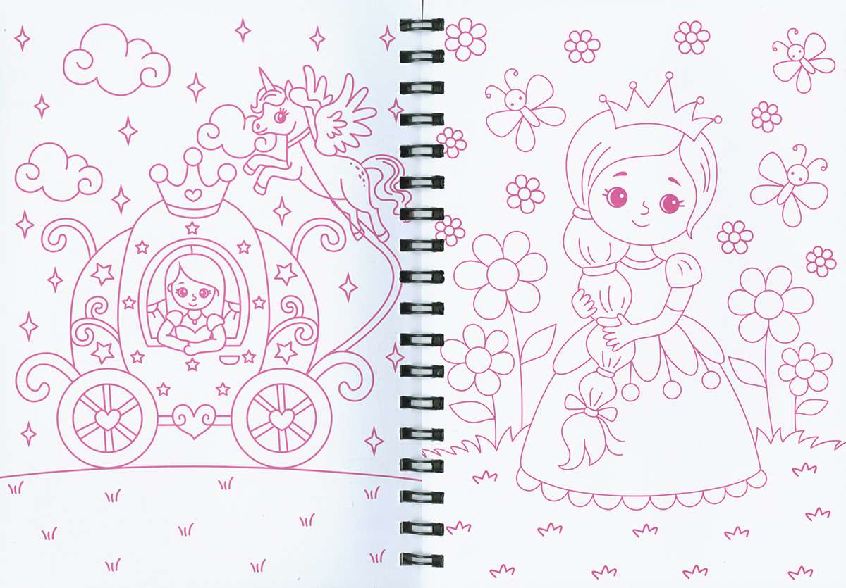 Encuadernación: Wire-o y cartón con acabado en mate y estampación, troquelado. Con hojas de purpurina y adhesivos.