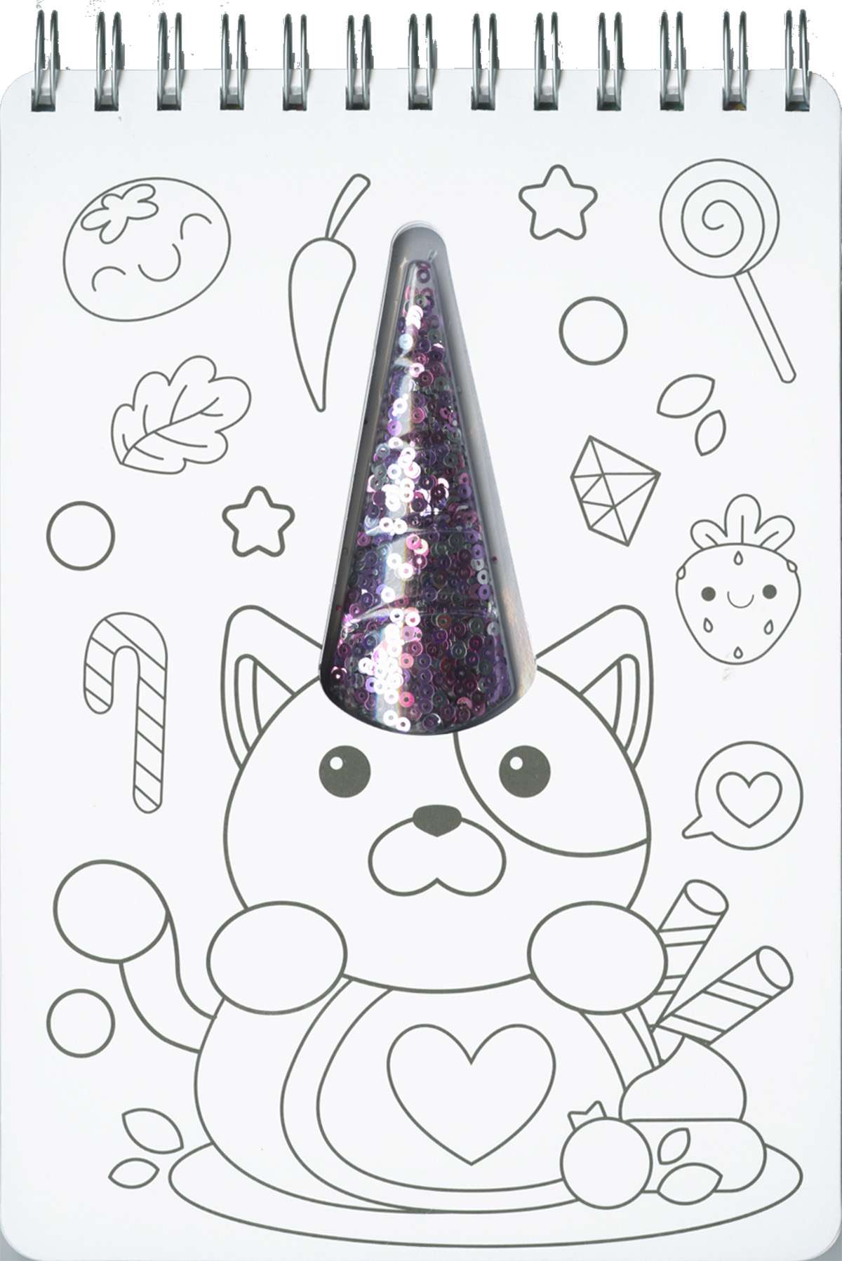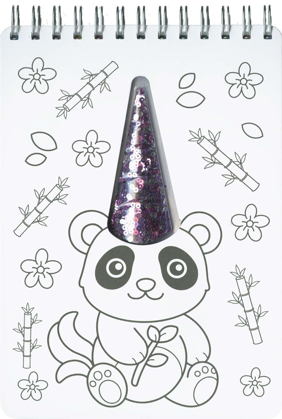 Encuadernación: Wire-o y cartón con acabado en mate y troquelado. Con un blíster que contiene lentejuelas.