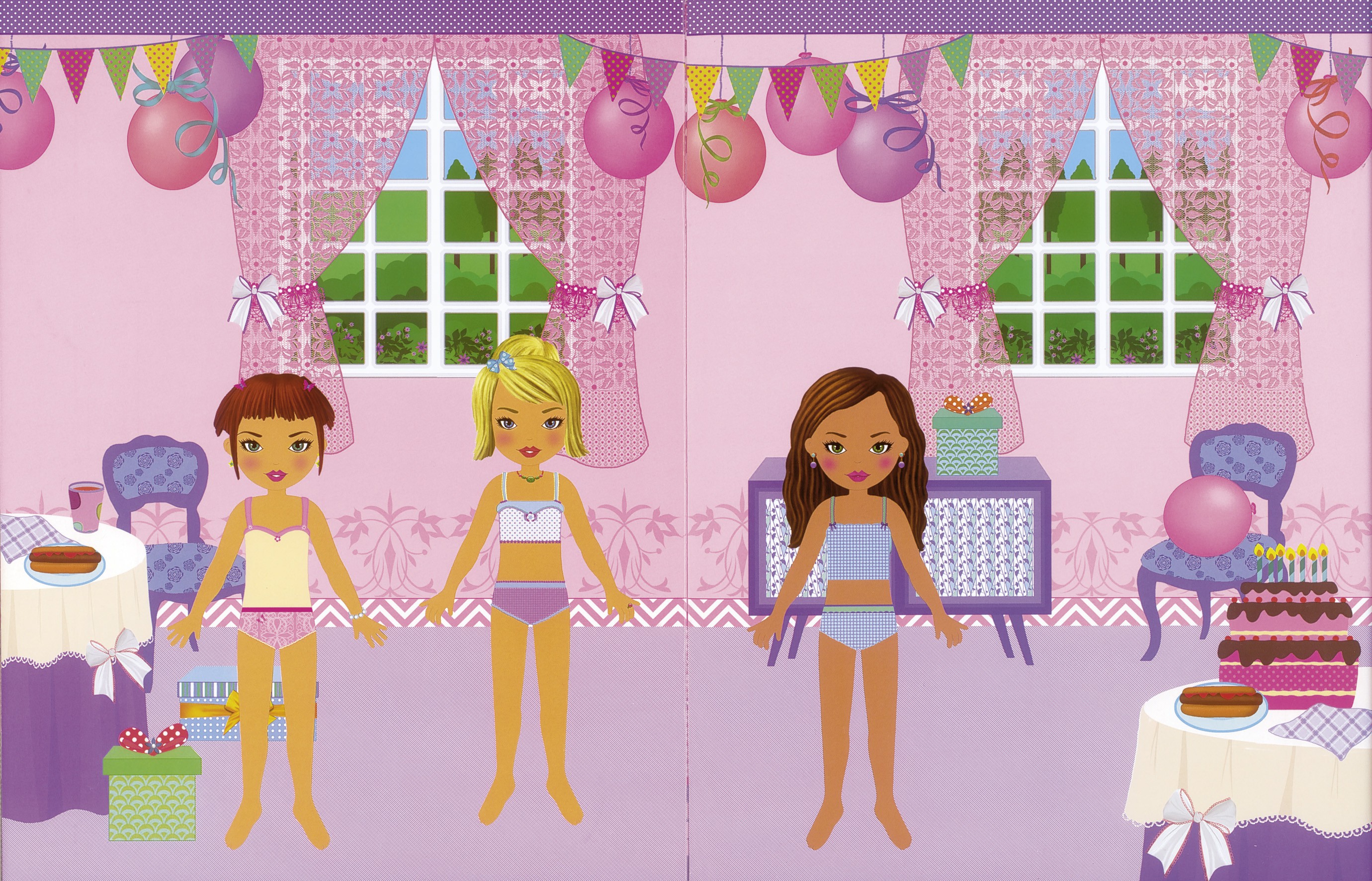 Viste a estas pequeñas princesas, combinando a tu gusto las numerosas prendas y accesorios que encontrarás en las pegatinas de este libro. Completa las escenas, crea tus propias historias ¡y que te diviertas!