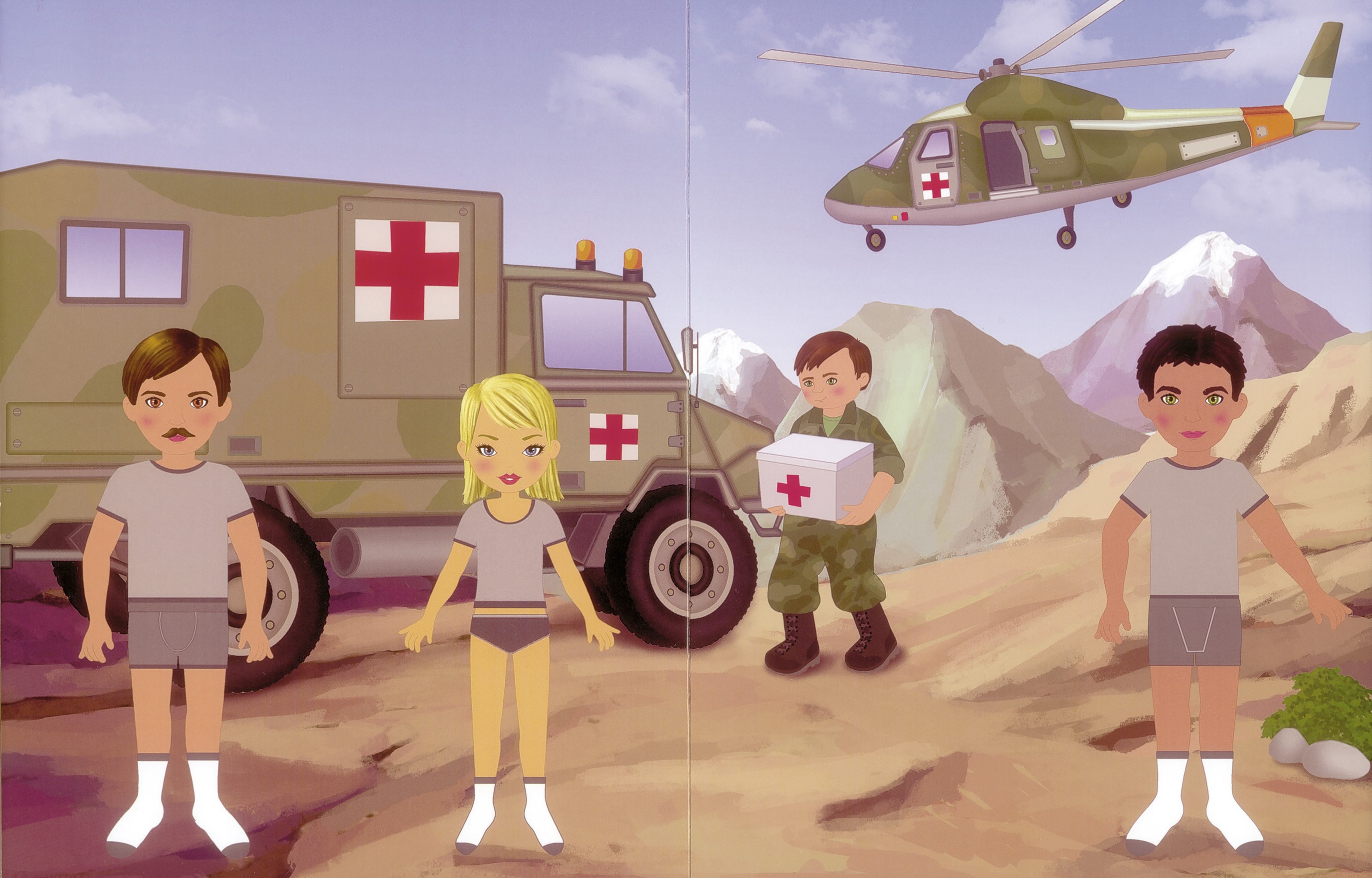 Viste a los soldados, combinando a tu gusto las numerosas prendas y accesorios que encontrarás en las pegatinas de este libro. Completa las escenas, crea tus propias historias ¡y que te diviertas!