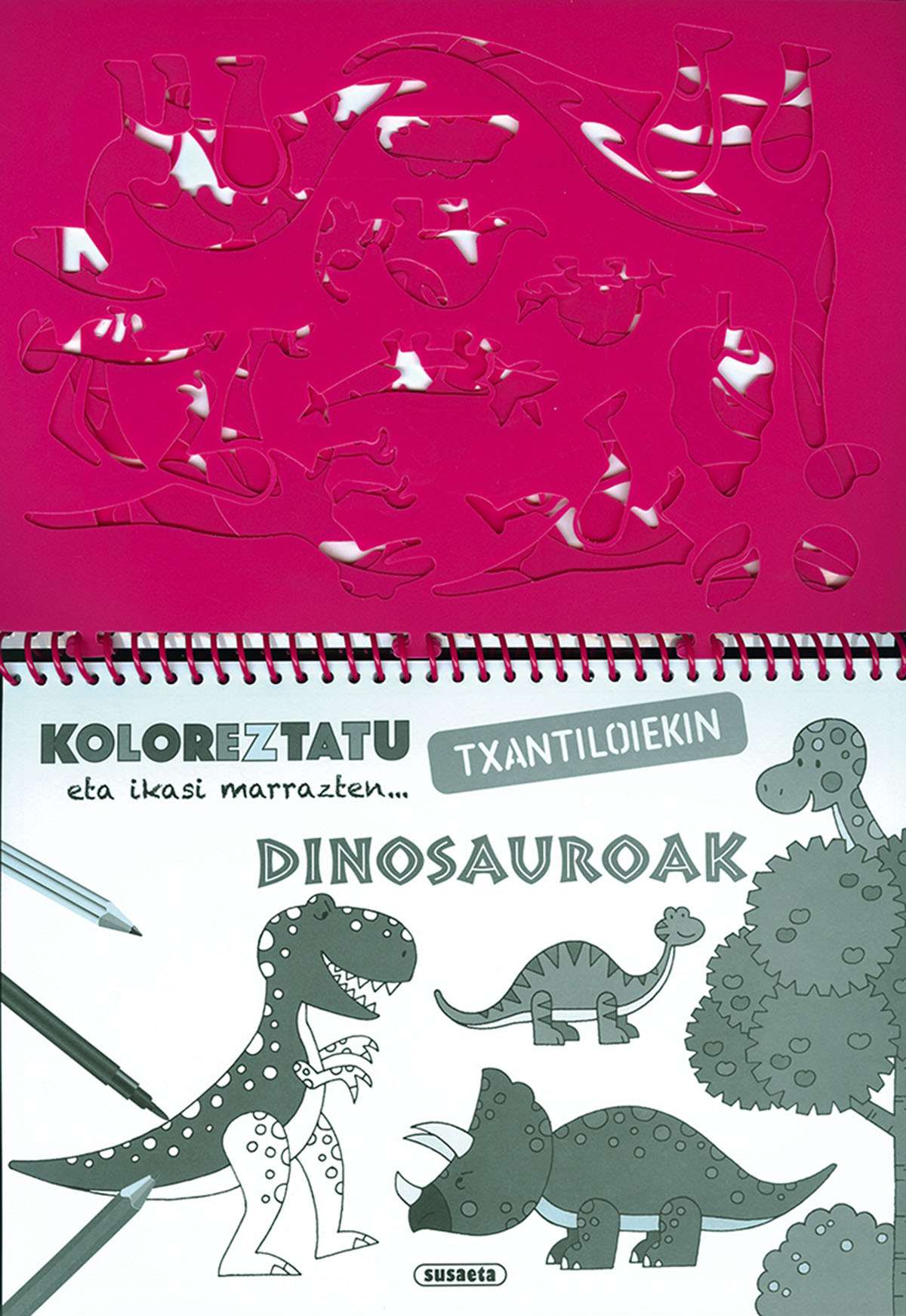 Koloreztatu eta ikasi marrazten dinosauroak ageri diren irudiak. Proposatzen dizkizugun ereduak kopiatu edo marrazki berriak egin ditzakezu, txantiloietako aukera ezberdinak baliatuz.